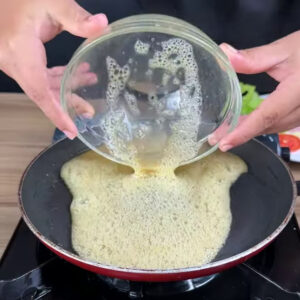 - Para começar, vou adicionar numa tigela 2 ovos, 1 pitada de sal, 1 pitadinha de pimenta do reino, 1 pitada de páprica e bater bem. Depois vou colocar numa frigideira untada com óleo e deixar o ovo fritar.