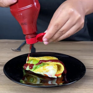 - Depois retiro da frigideira, coloco ketchup.