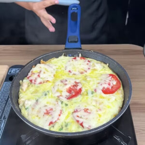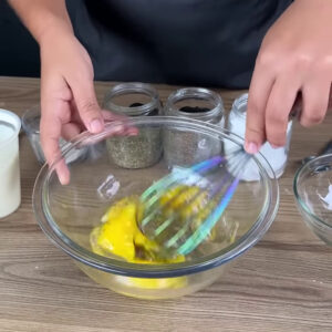 • Numa tigela vou colocar 4 ovo, 1⁄2 colher de sal, 1⁄2 colher de pimenta do reino, 1⁄2colher de orégano e bater.