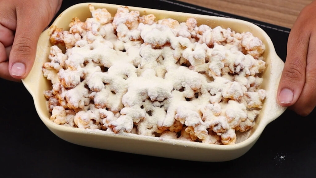 • E para finalizar vou polvilhar leite em pó por cima das pipocas.