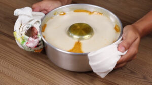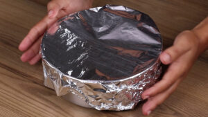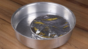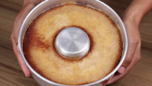 • Depois vou colocar essa forma dentro de outro recipiente, adicionar água até a metade elevar ao forno a 180 graus por 90 minutos.