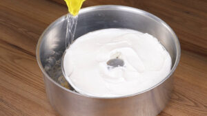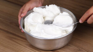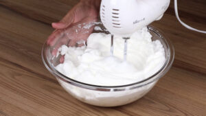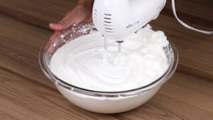 - Depois de bater vou adicionar aos poucos 12 colheres de sopa de açúcar e bater novamente.