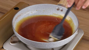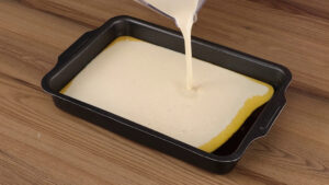 - Para continuar vou adicionar essa calda em uma fôrma assadeira.