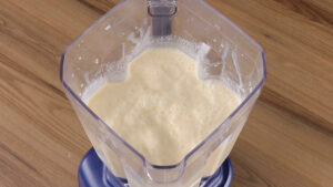 - Após isso em um liquidificador vou adicionar 2 pães e 650 ml de leite. Vou adicionar também 3 ovos, 50 gramas de coco ralado, 200 gramas de açúcar, 200 gramas de creme de leite, 200 ml de leite em coco e vou bater bem esses ingredientes por 2 minutos.
