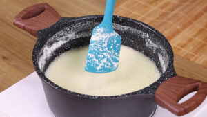 - Em uma panela em fogo alto vou adicionar 1 litro de leite e esperar ferver.