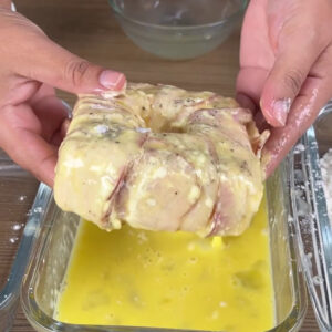 - Em seguida vou adicionar 3 ovos batidos. Vou bater esses e nesse batido de ovos colocarei o nosso empanado.