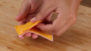 - Vou cortar também 1 fatia de presunto e 1 fatia de queijo cheddar.