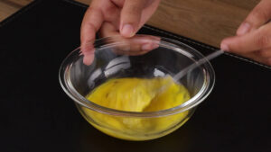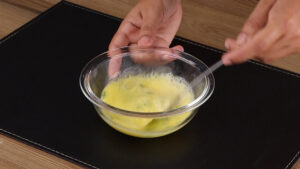 - Em outro recipiente vou adicionar 2 ovos, cebolinha a gosto, e vou misturar.