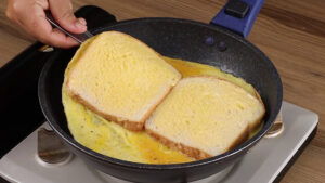 - Em seguida vou adicionar mais 1 colher de sopa de manteiga, os ovos, 1 fatia de pão, e vou deixar fritar.