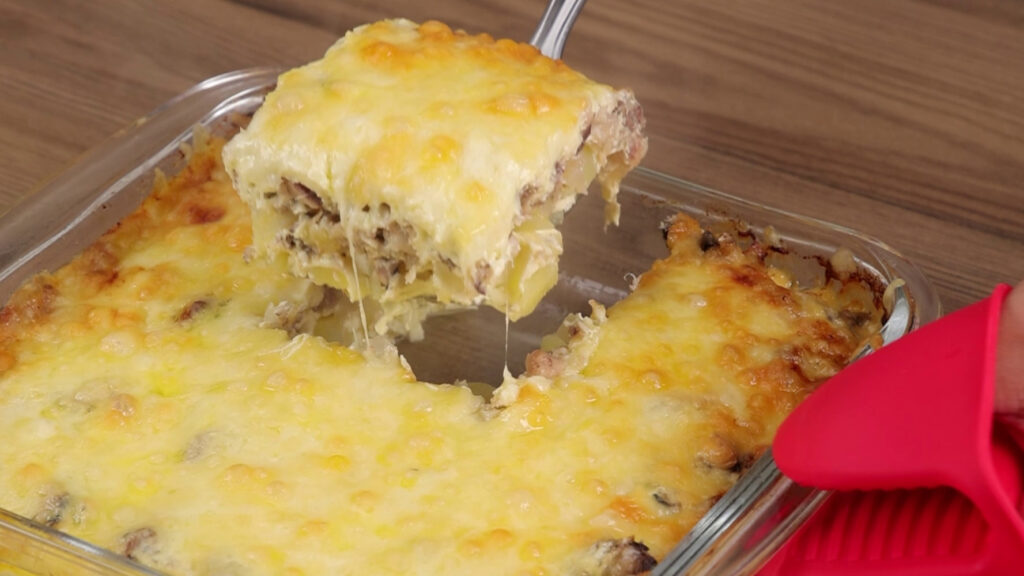 - Vou untar uma travessa com manteiga. Quando as batatas estiverem cozidas vou escorrer e adicionar na travessa.