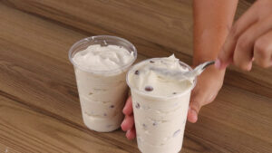 - E a nossa receita está pronta agora é só se deliciar. Olha a maravilha que ficou nosso sorvete.