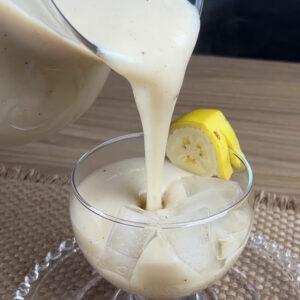 - Agora é só passar para uma jarra e está pronto o nosso suco de arroz com banana, canela e limão. Fica uma delícia e com certeza todos vão adorar essa receita fácil e deliciosa!