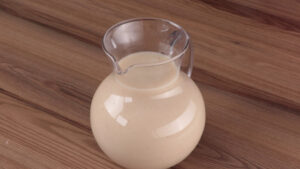 - Por fim vou passar essa mistura para uma jarra e vou levar na geladeira por duas horas.