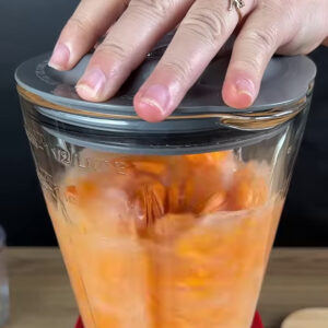 - Para começar, adiciono em um liquidificador 2 cenouras cortadas em rodelas, 2 xícaras de água e vou bater bem.