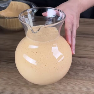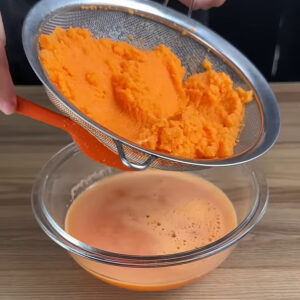 - Depois sobre uma tigela coloco uma peneira e vou despejar o suco para coá-lo.