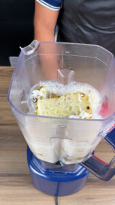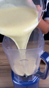 • Depois de cozinhar, passe todo o conteúdo da panela para o liquidificador e adicione 1,5 L de água gelada e bata até que a mistura fique homogênea.