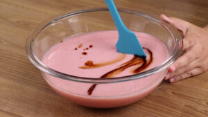 • E para continuar vou adicionar 1 colher de sopa de essência de baunilha e misturar bem, essa baunilha irá dar um sabor especial no nosso suco.