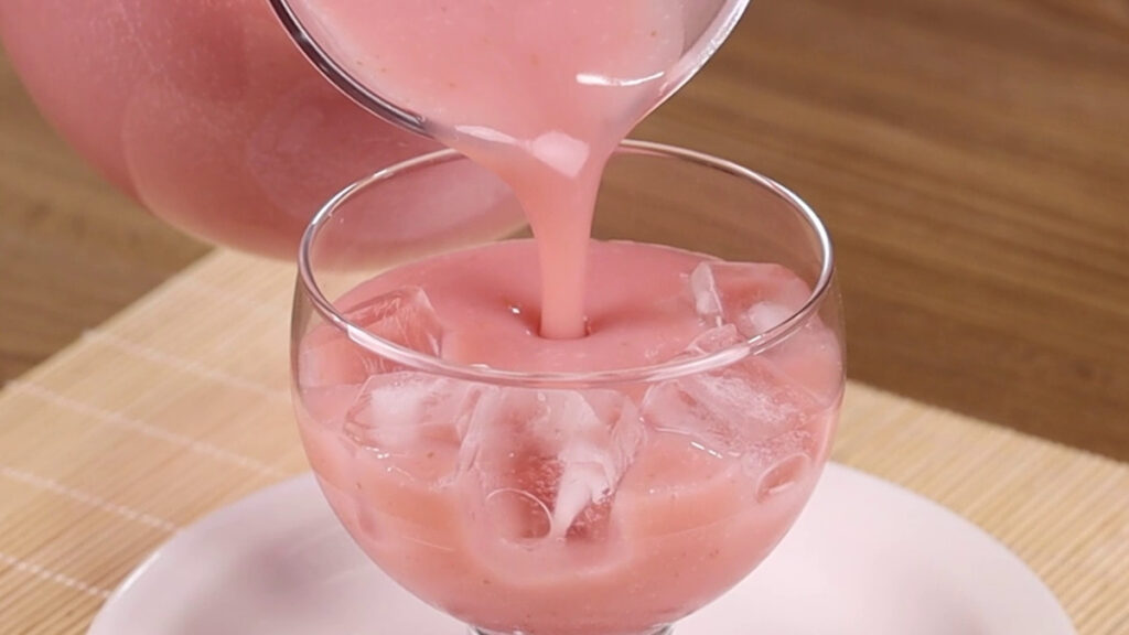 • Passarei tudo isso para dentro de uma jarra de vidro, e você pode levar na geladeira ou servir um algumas pedrinhas de gelo.