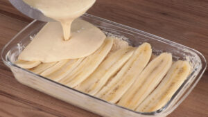 - Vou adicionar também as bananas e o creme que fizemos.