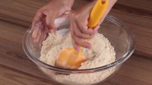 - Para começar, em uma tigela vou adicionar 2 xícaras de farinha de trigo, 1 xícara de açúcar, ½ colher de chá de canela em pó, 3 colheres de sopa de manteiga e vou misturar bem esses ingredientes.