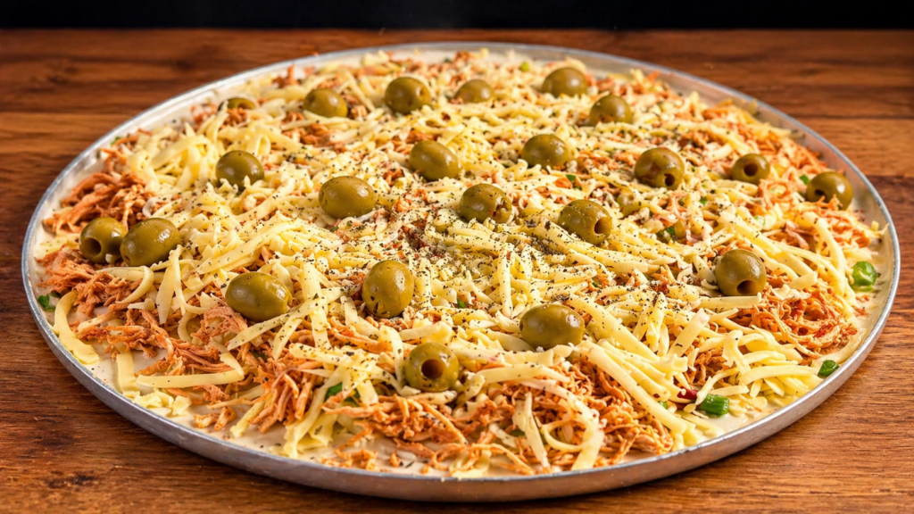 Üzeri için malzemeleri damak zevkinize göre değiştirebilirsiniz. Et, ton balığı veya sebzeler kullanabilirsiniz. Hamur yumuşaktır ve yoğurma gerektirmez.