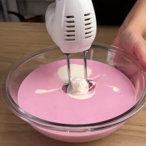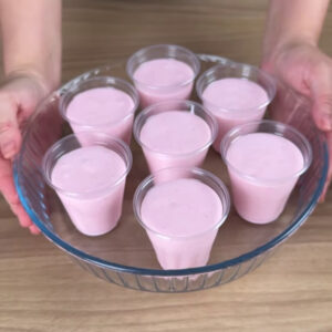- Para começar, numa tigela vou adicionar 12 iogurtes sabor morango, 1 lata de leite condensado, 2 caixas de creme de leite, 2 colheres de emulsificante e baterei.